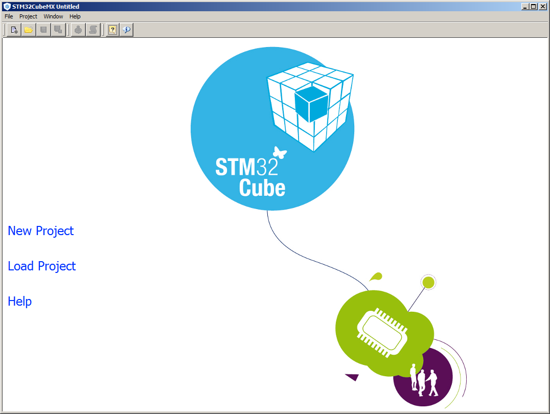 The STM32CubeMX start screen includes a link (and menu items) to start a new project. The new project dialogue is very intuitive. On one tab it allows you to select an STM32 part number and displays the memory and features of the selected part. On another tab it allows you to select a standard evaluation, discovery or STM32 Nucleo board.