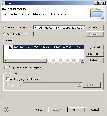 Source Code and Project FilesThis demo application is available in the following directory of the offical FreeRTOS zip file download:FreeRTOS-Plus/Demo/FreeRTOS_Plus_UDP_and_CLI_LPC1830_GCC